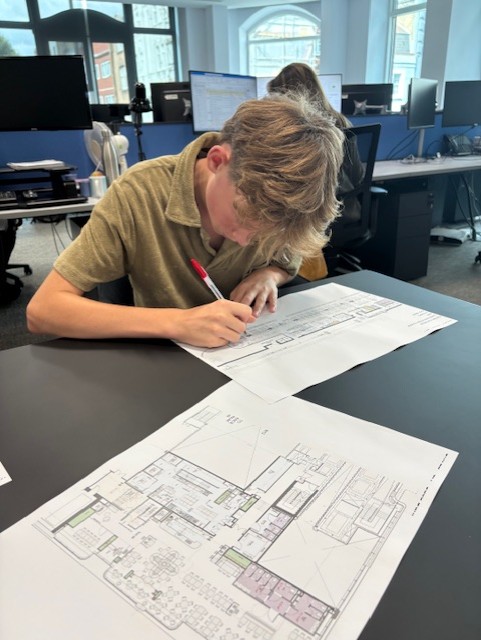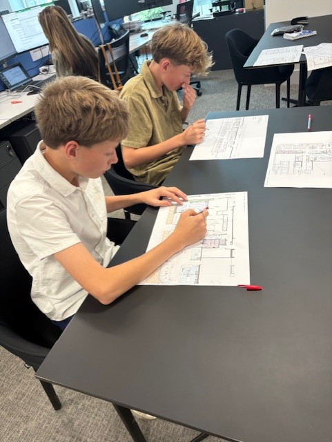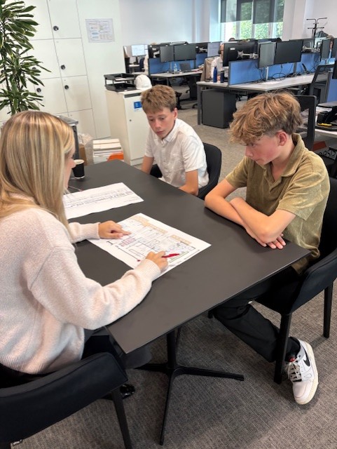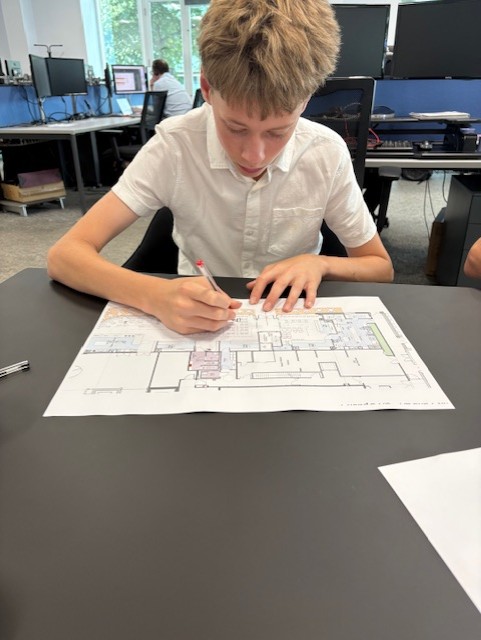 Dan and Jemma gave us a brilliant tour of the office, showing us various floors and aspects of the company, which helped bring the profession to life. Back at their desks, Jemma brought out CAD floorplans and set the boys the task of counting chairs, tables, and other elements - a challenge they took very seriously, turning it into a fierce (but fun!) competition to see who could be the fastest and most accurate.